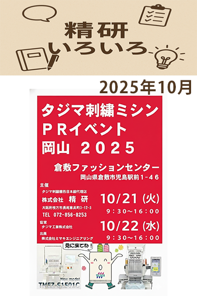 10月21日火曜日と10月22日水曜日、岡山県倉敷市の倉敷ファッションセンターで『タジマ刺繍ミシンPRイベント岡山2025』を開催します!