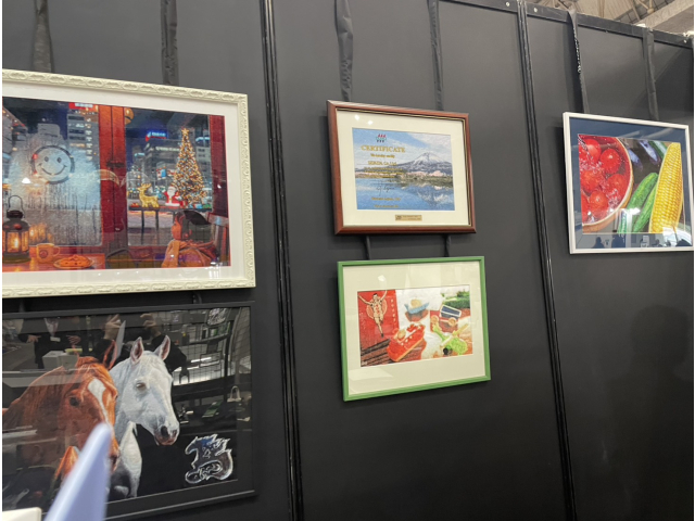 またフォト刺繍作品や刺繍商品も多数展示し、