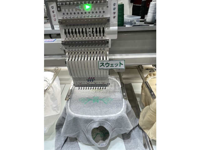 長いアームスリーブへの刺繍実演を行いました。